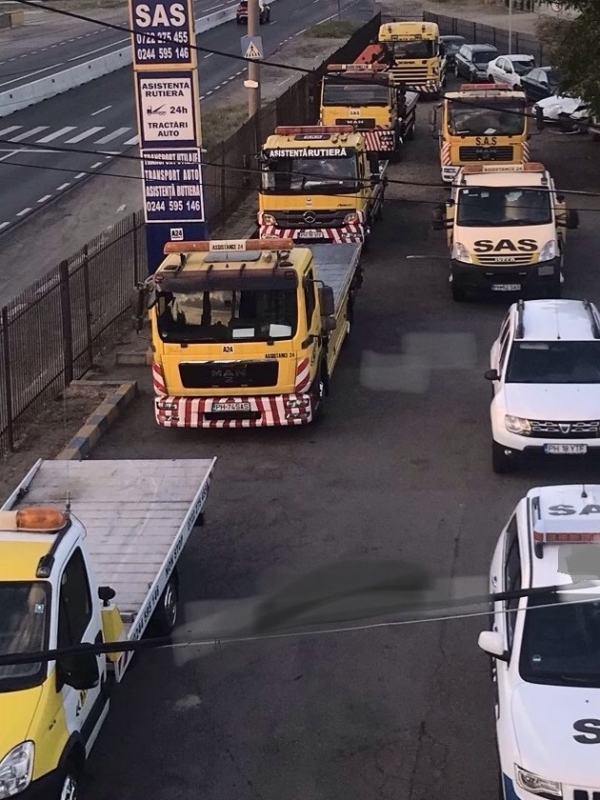 STRAND AUTO SERV dispune de un parc de depozitare de 2000 metri patrati special amenajat, imprejmuit si iluminat cu monitorizare video asigurata de 6 camere de supraveghere, portile de acces atat pietonal cat si auto fiind actionate electronic prin comanda de la distanta, unde pot fi depozitate masinile. SC STRAND AUTO SERV SRL dispune de 6 autospecialiate, echipate cu sisteme hidraulice, autospecializata cu macara, autoturism - atelier mobil (echipat corespunzator) care pot remedia micile probleme ivite in trafic. Toata flota din parcul auto detine verificari tehnice periodice, licente, copii conforme, rovigniete, asigurari obligatorii pentru autoturismele transportate cat si pe perioada manipularii acestora, CMR-uri.