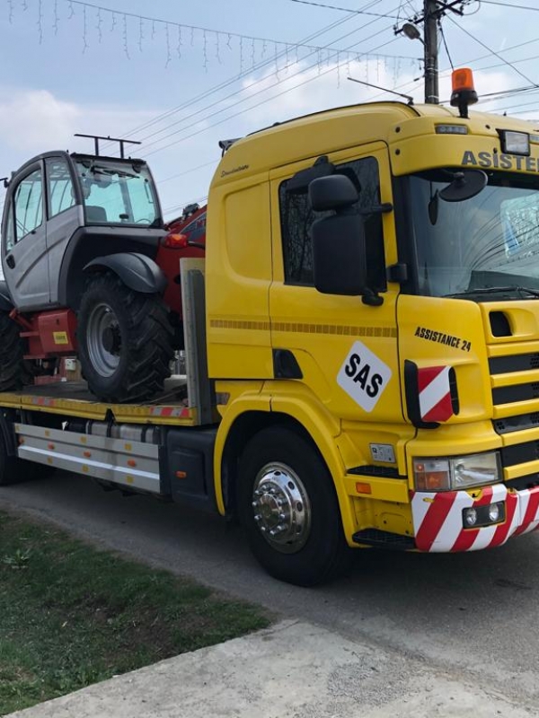 - transport utilaje(bobcat, nacele, motostivuitoare, tractoare agricole, mine excavatoare, echipamente agricole si industriale ata noi cat si avariate, cu sarcina maxim admisa de 12 t).